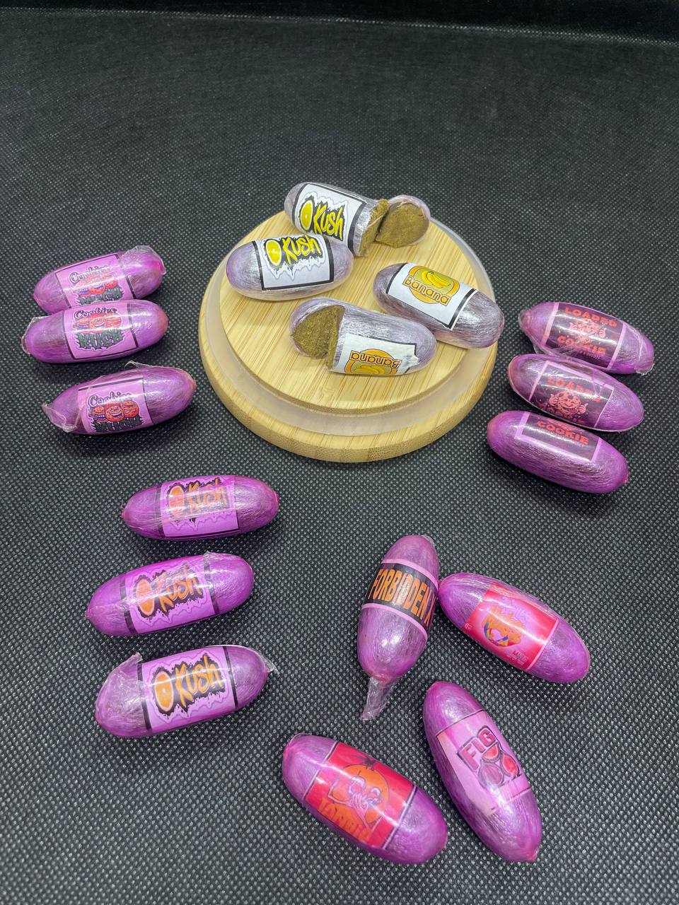 Filtered Hash eggs. Contains 10g of each per egg. Highly THC product with a THC of 34-37%